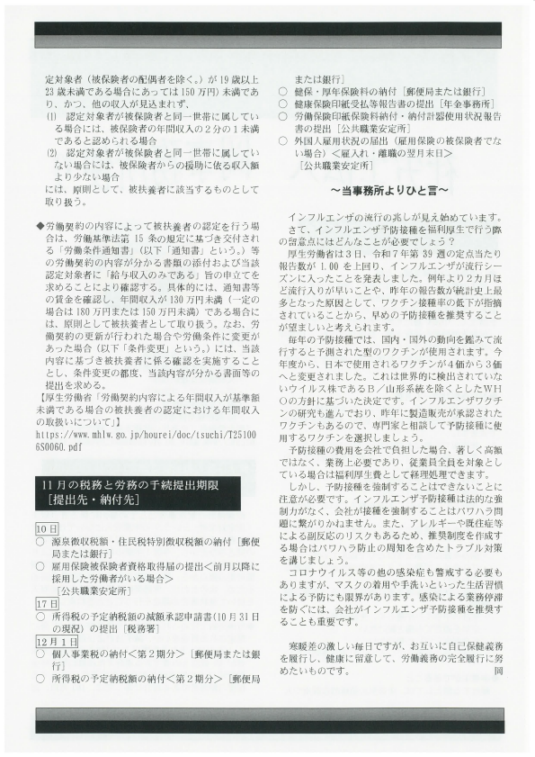 事務所便り 令和7年11月号